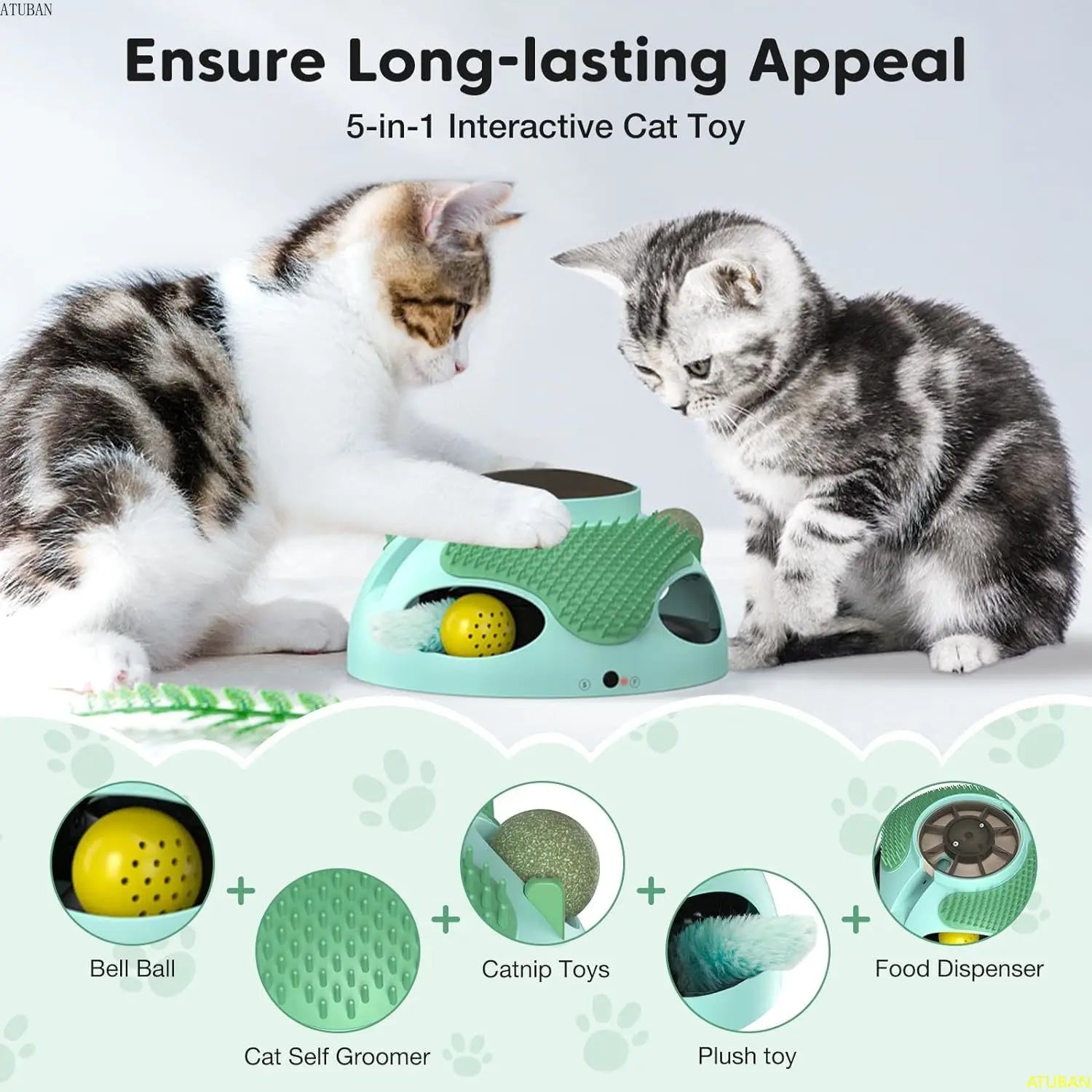 ATUBAN Cat Toys 5 in 1 Automatic Interactive Kitten Toy,Catnip Toy,Cat Toy Balls,Ambush Feather Electronic Cat Toy,Cat Groomer