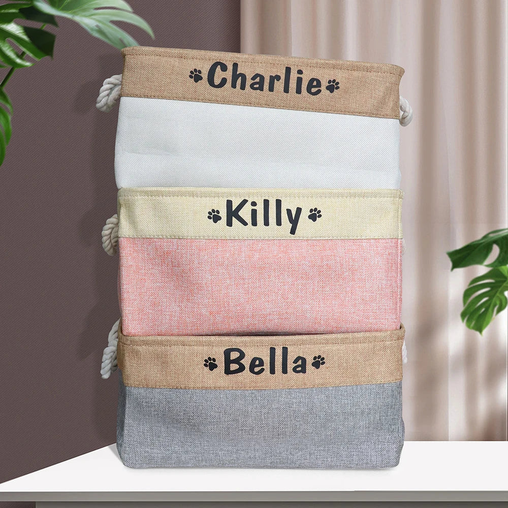 Custom Pet Toy Dog Accessory Storage Bin Personalized Pet Puppy Organizer Storage Basket For Toys Blankets Leashes And Food