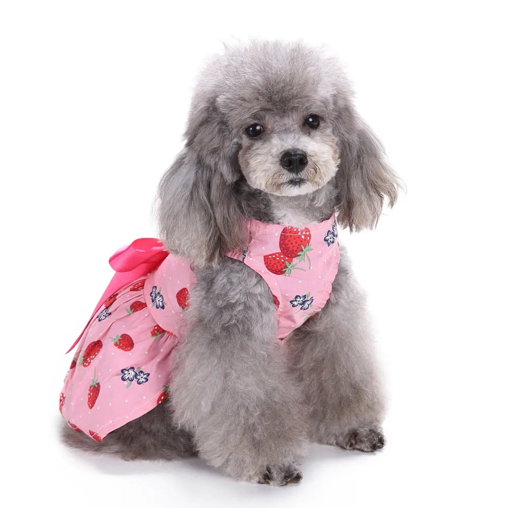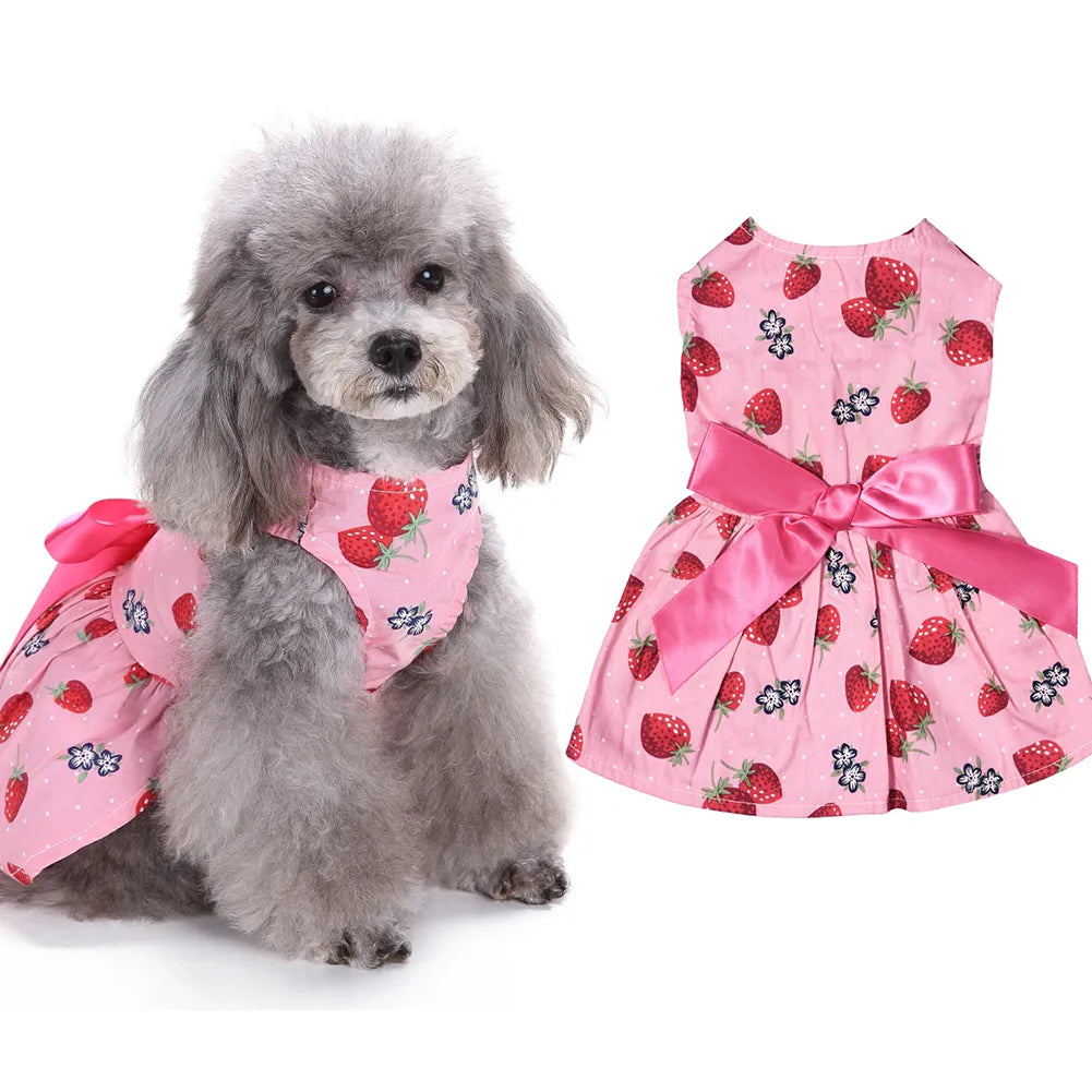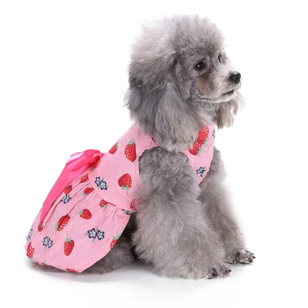 Features: Soft, Strawberry Pattern, Ribbon Bowknot, Pet Supplies