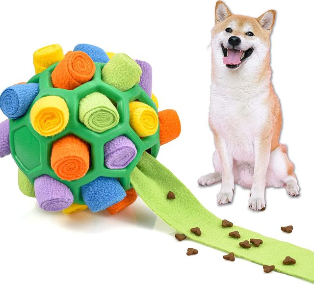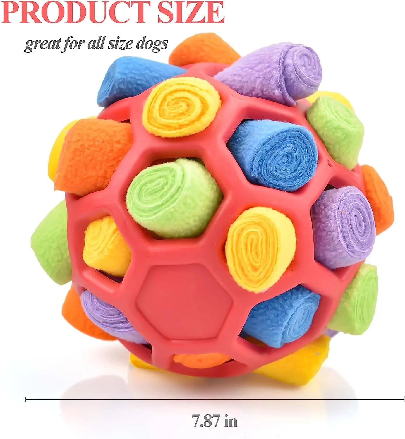 * Interactive Puzzle Toy: Hide treats in the fleece and let your dog find them with its nose. It will well slow down its eating speed and promote food digestion. Due to the snuffle ball toy, your dog will not be bored any more.