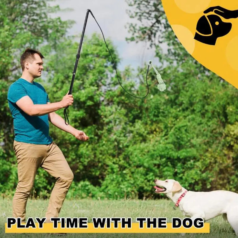 4.Easy to Use: This dog teasing stick is equipped with a ball toy and a flannel toy that can be replaced at will, increasing the fun of playing and attracting the dog's attention.