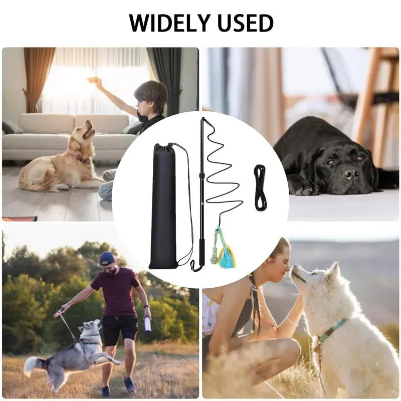 5.Promote Communication : This dog teasing stick is an excellent outdoor interactive toy for dogs that can help you and your dog to enhance the relationship and increase intimacy when playing. It is also a great way to train your dog's agility and obedience skills.