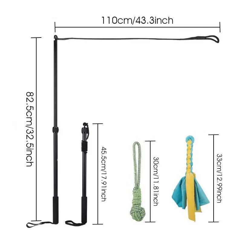 Name: Dog Teasing Stick (Black Two Sections - Enhanced Version)Material: (Super high-quality lightweight aluminum alloy + sponge non-slip handle + nylon rope + cotton rope toy replacement head)
