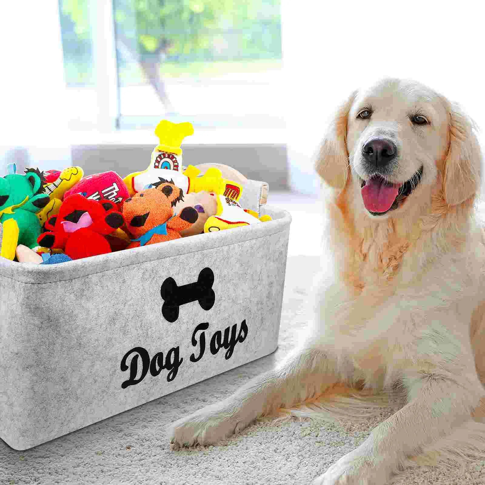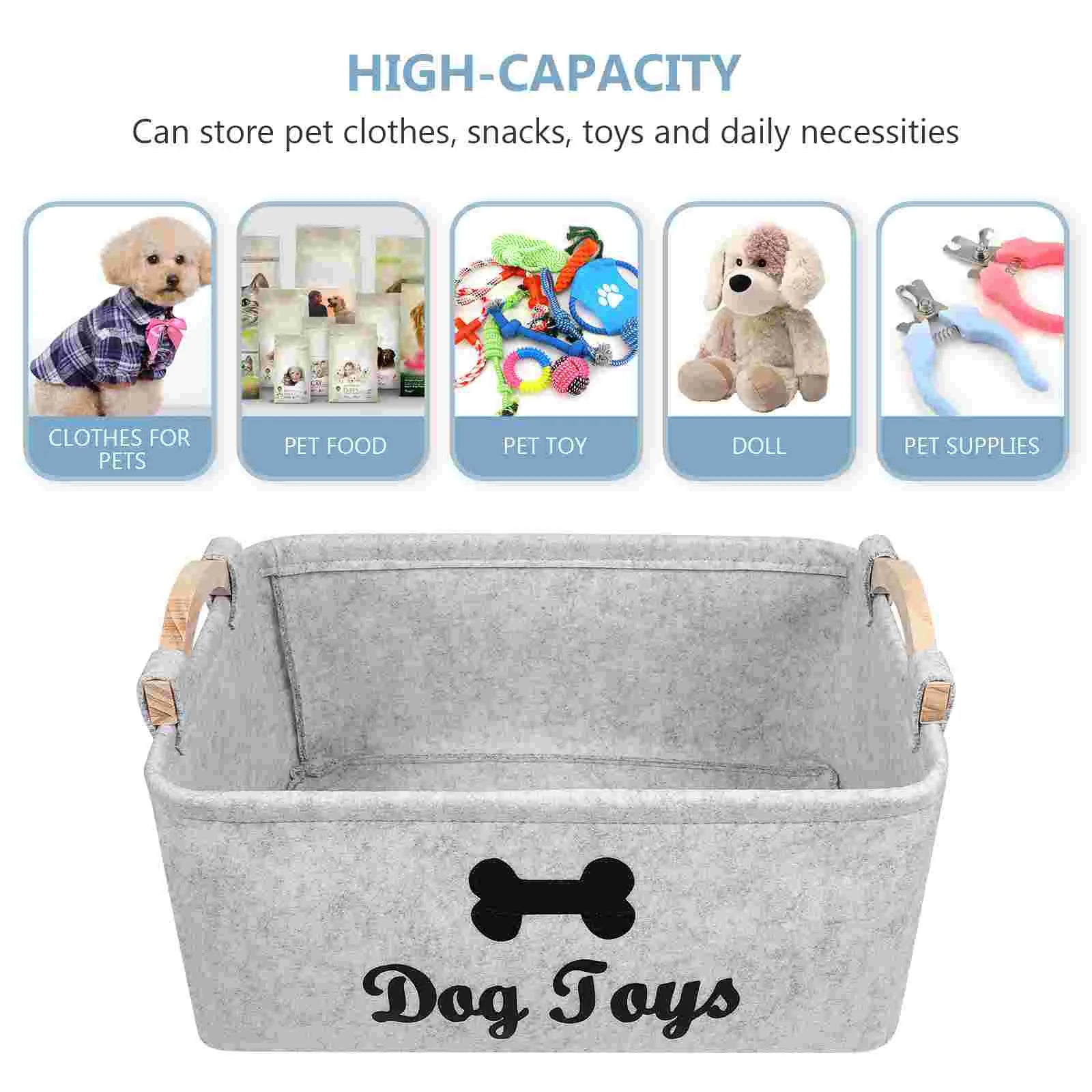 Dog Toy Pet Toy Storage Felt Case Square Sundries Handles Wooden Accessory Bin Dog Organizer