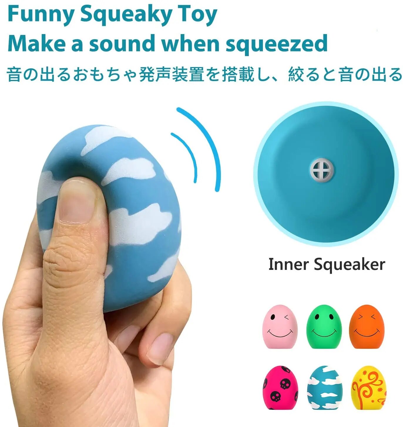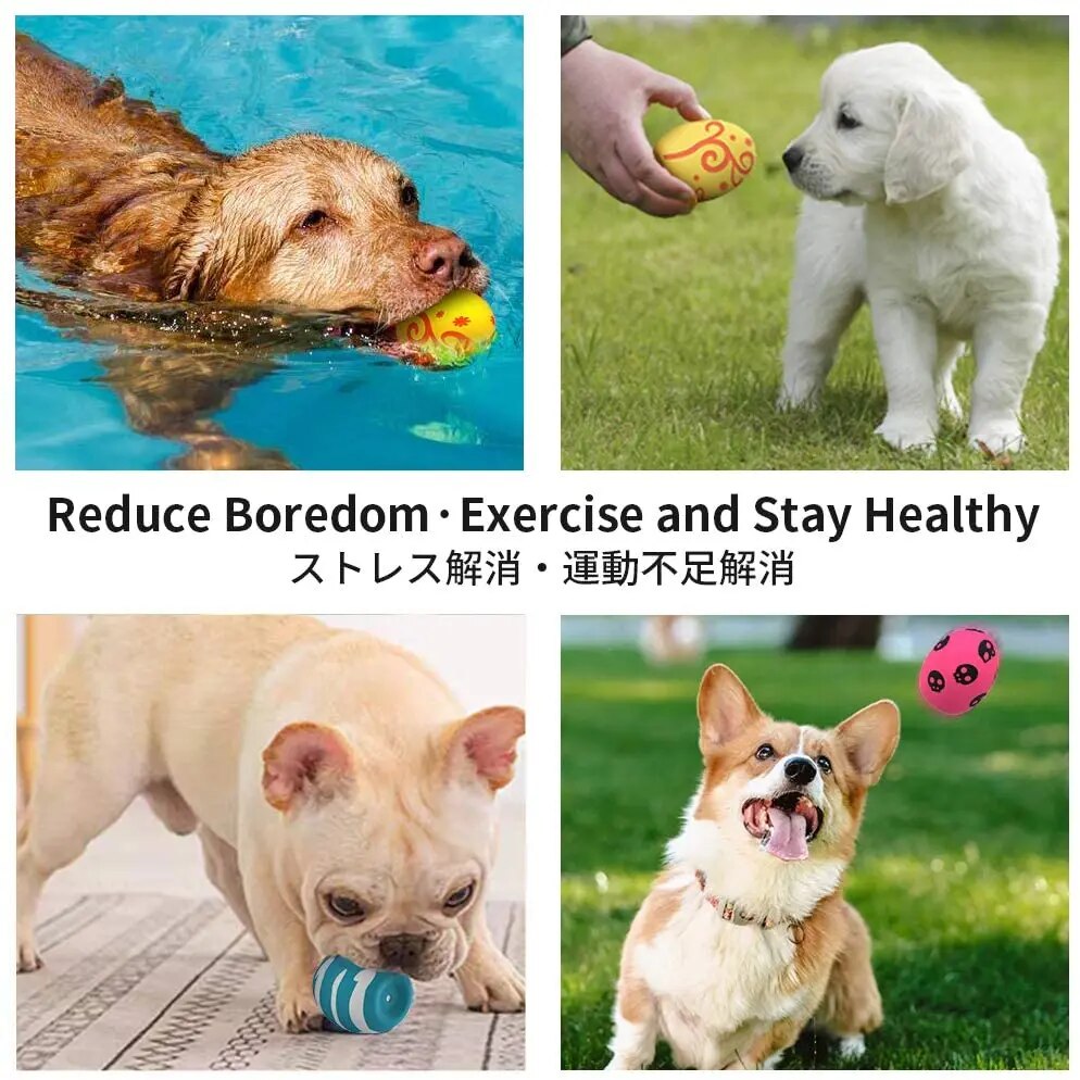 The toys are bouncy and have fun egg shape that dogs love to chase. With built-in voice device, they make squeaky sound easily when dogs bite or squeeze them. The funny squeak can attract your dog's interest and give them a lot of fun.