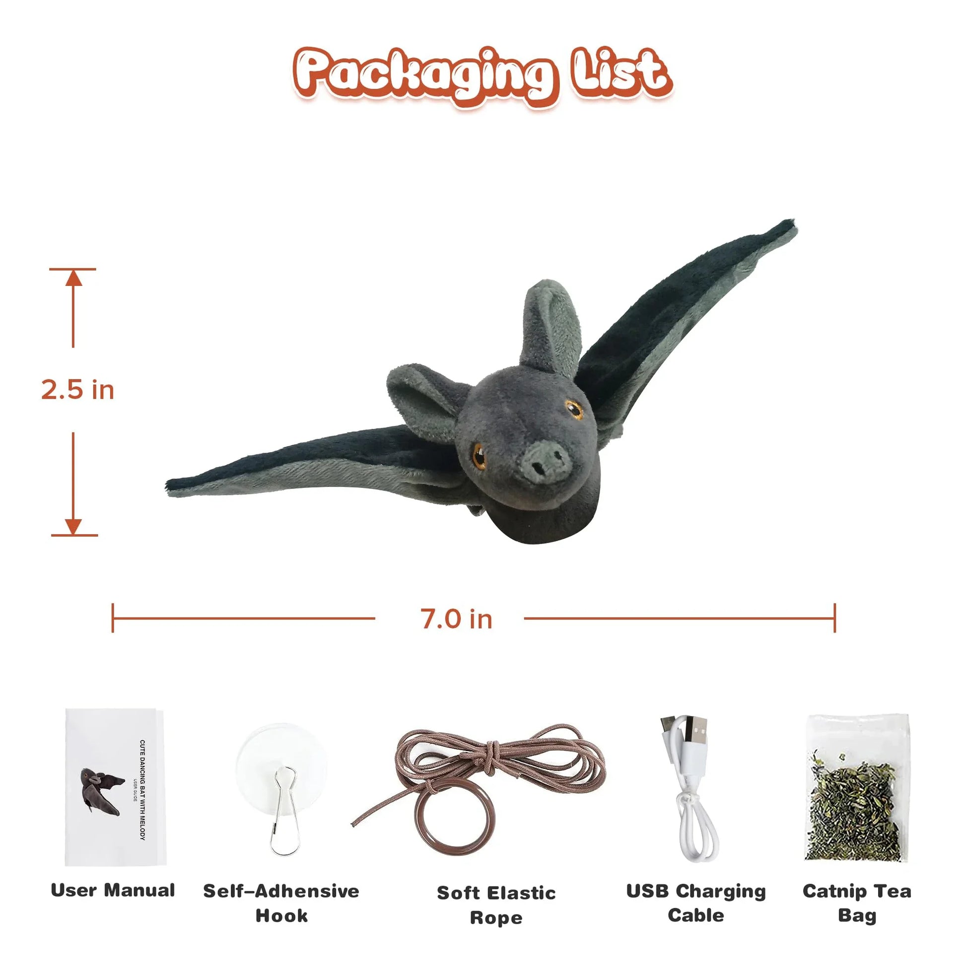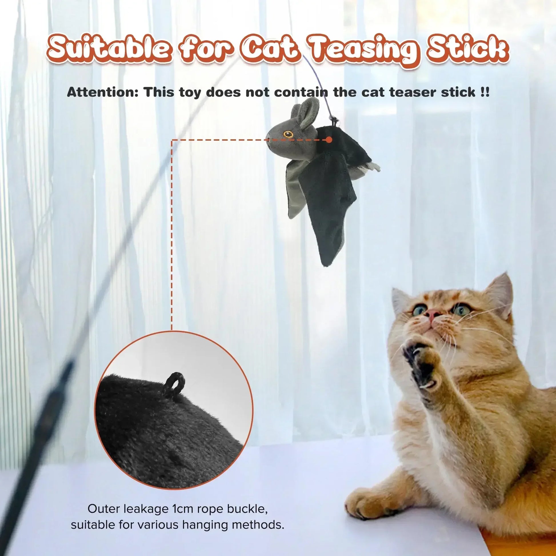 š»ćSuitable for Cat Teaser Stick and Hanging UsećThis intelligent flapping wings bat cat toy has a rope buckle design on the back, suitable for use with a cat teaser stick. In your spare time, you can interact with your beloved kittens and enjoy the fun of cat fishing! Self-adhesive hook and elastic rope are also included in the package, which can be used to hang toys on door frames and automatically tease cats.