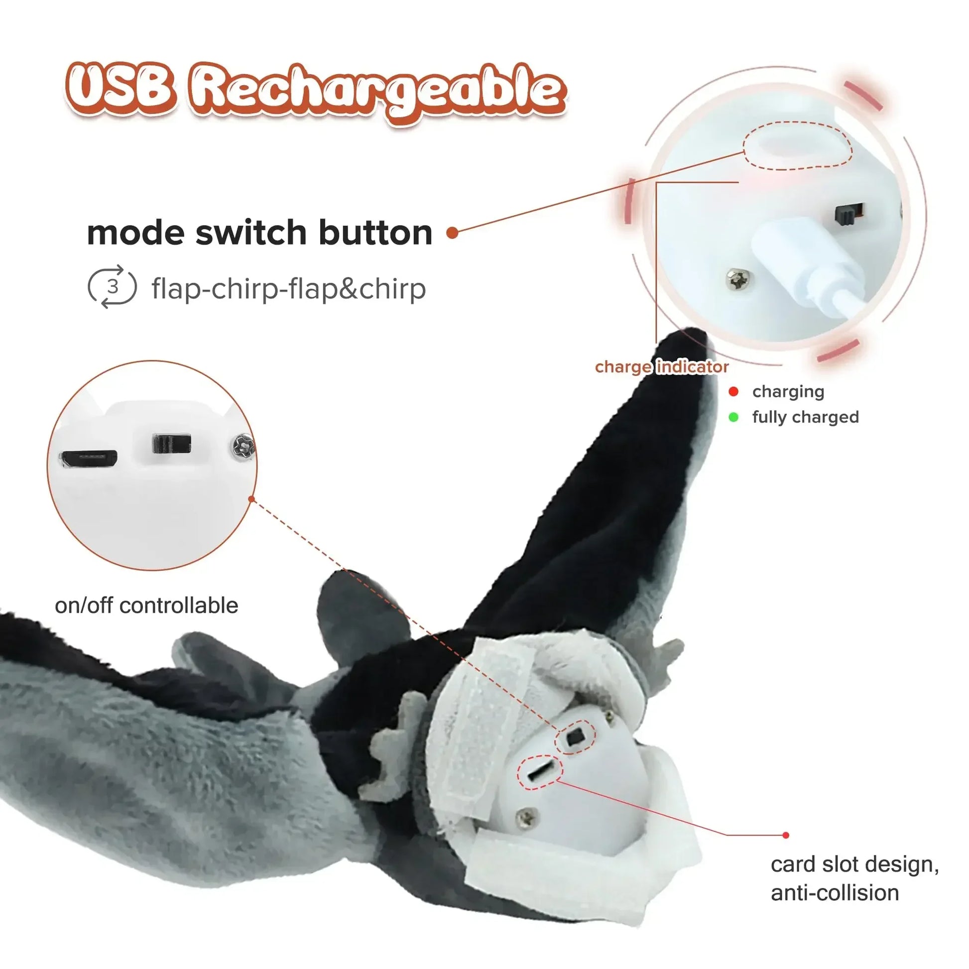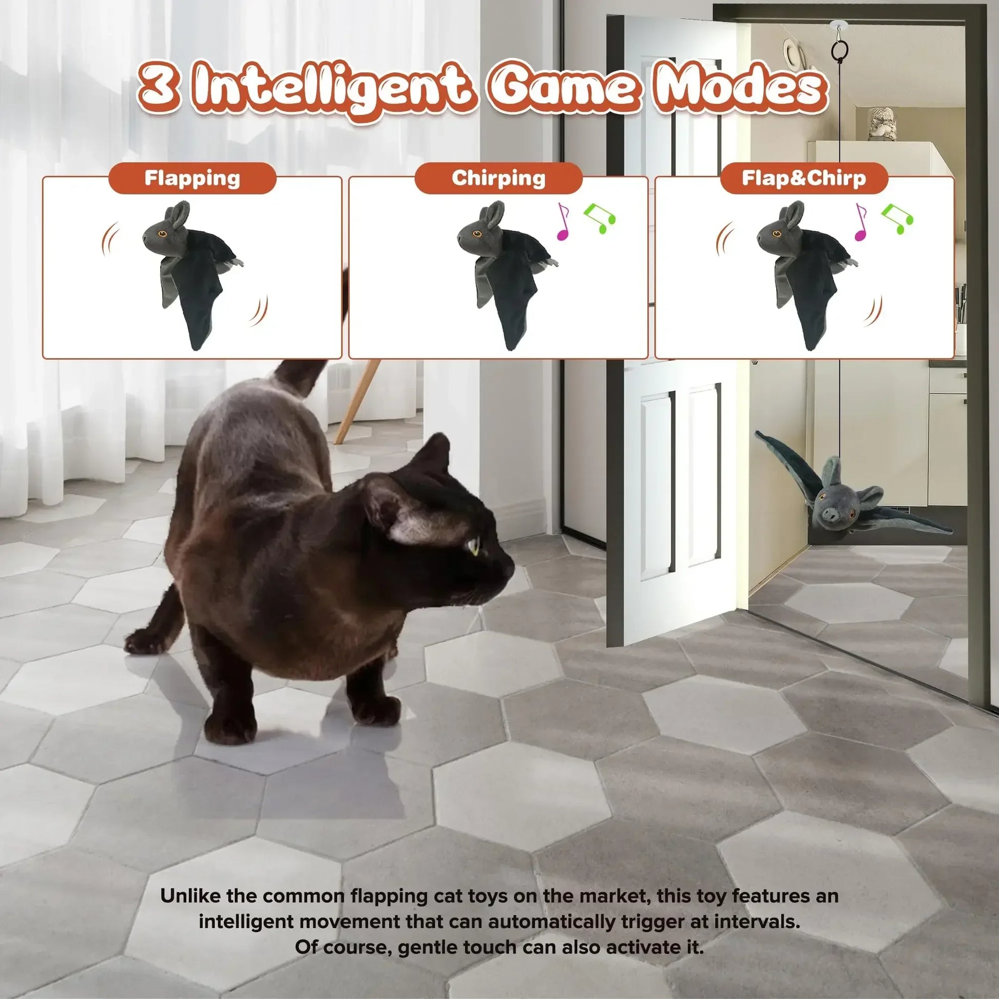 Flapping Bat Cat Toys Interactive Plush Birds Door Hanging Vivid Chirping Toy 3 Modes Pet Kitten Cat Chase Exercise Fishing Toy