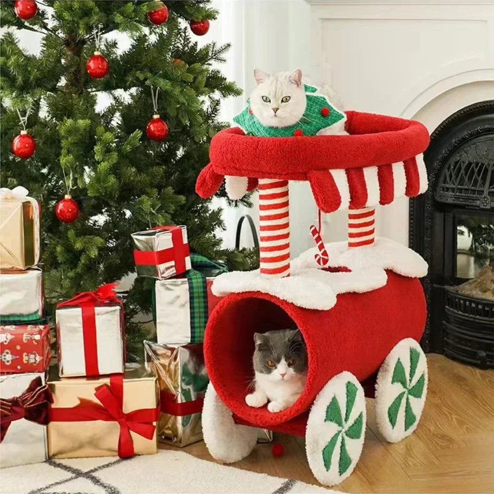 High Quality Winter Warm Christmas Train Cat Climbing Frame Cat House Toys Cat Trees Scratcher