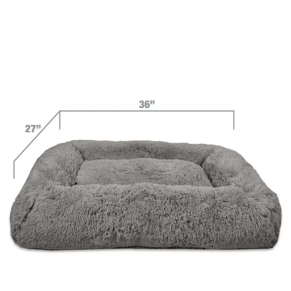 Give your pet a warm and peaceful place to relax with the Vibrant Life Large Furry Bolster Dog Bed. This cozy pet bed is 36 inches by 27 inches, making it perfect for large dogs like boxers, labradors, and golden retrievers. The bolstered walls of this modern dog bed lend your pet comfort and support while providing a soft and restful sleep area for your furry friend. Made from 68 percent recycled material, your purchase of this luxury dog bed keeps an equivalent of 210 plus plastic bottles from the environment. Featuring a furry plush design, this deluxe dog bed is sure to add a style to your home while giving your pet a comfortable space of their own. Available in multiple colors so you can pick the stylish dog bed that best fits your decor style and your pet's personality. Expertly crafted with durable materials, this large dog bed has a removable machine-washable cover for easy care and long life.