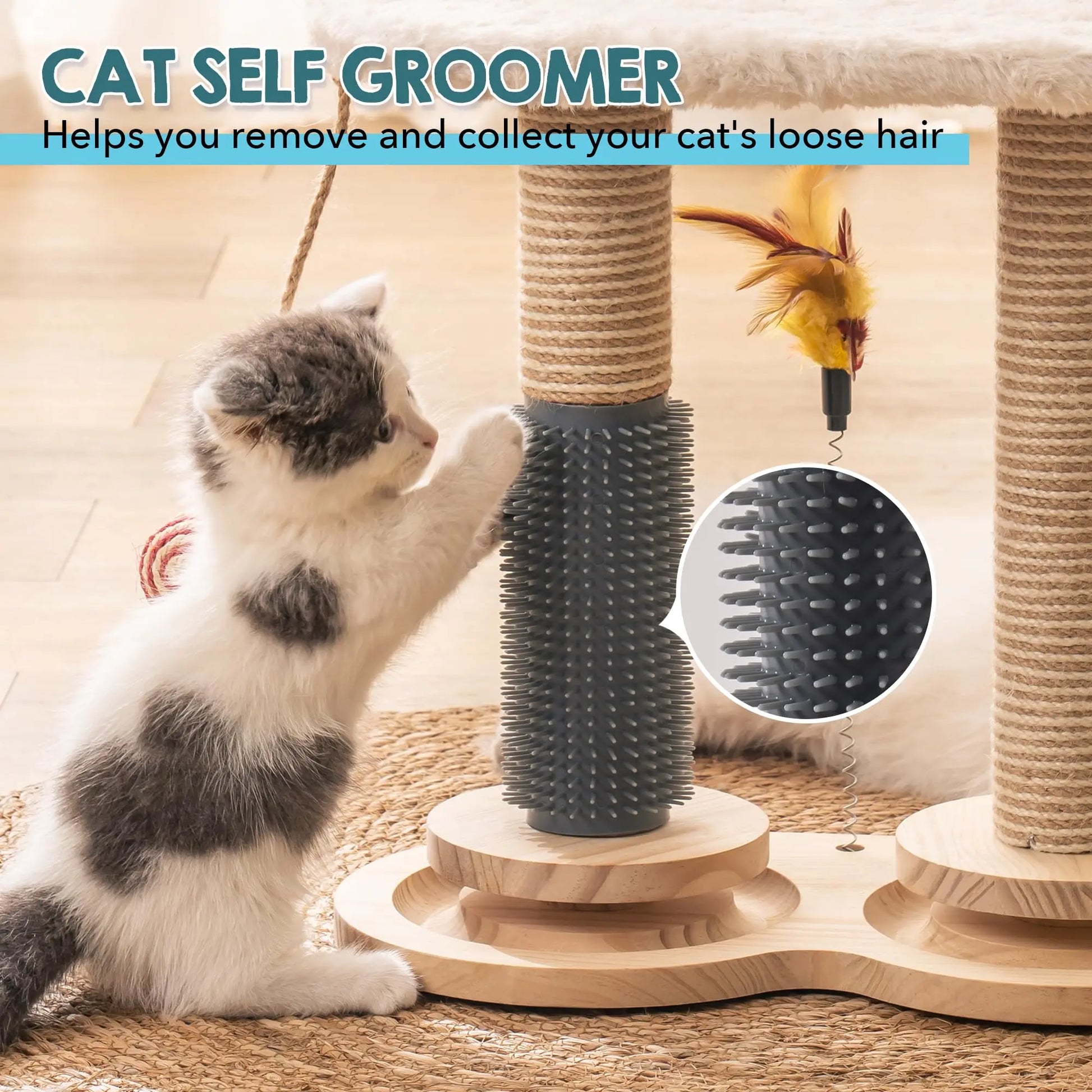 【Rabbit Fleece Perch & Self-Grooming】The top is covered in soft and cosy rabbit fleece, providing a perfect place for cats to perch.Equipped with a self-grooming device to help and collect loose hair from cats