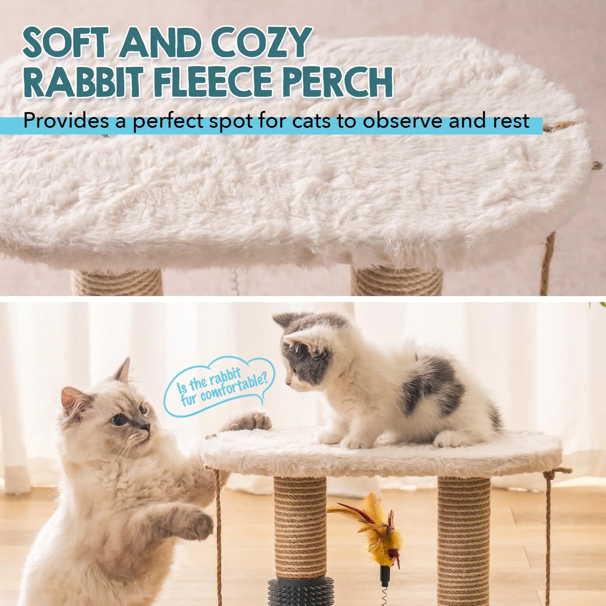 Mewoofun Cat Scratching Post for Indoor Soft Rabbit Fleece Perch for Rest Natural Sisal Scratcher Interactive Kitten Toy Balls
