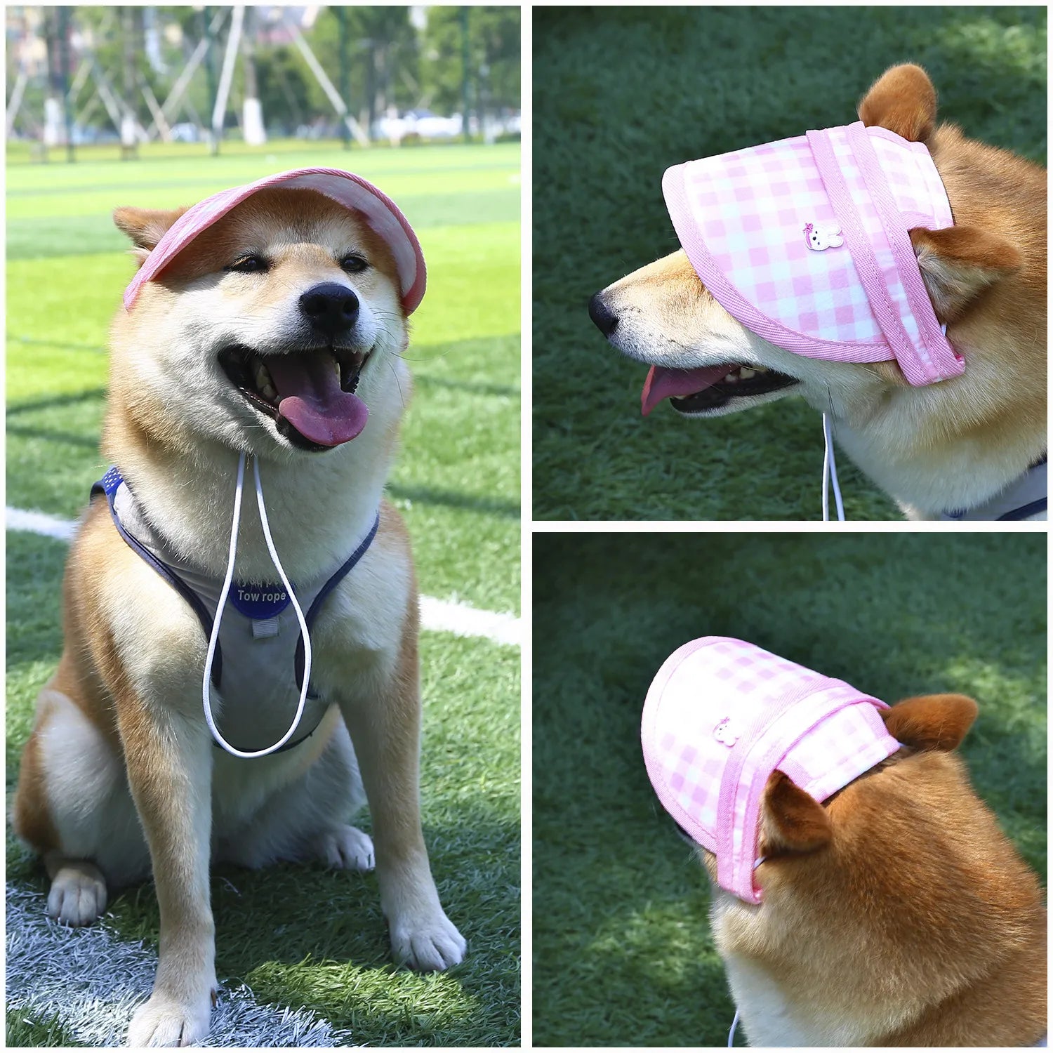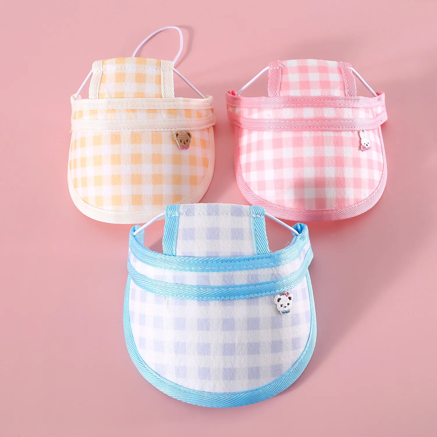 Dog Summer Hat Soft Buckle Adjustment Plaid Print No Restriction Empty Top Sunshade Washable Windproof Strap Pet Baseball Hat Pet Headwear