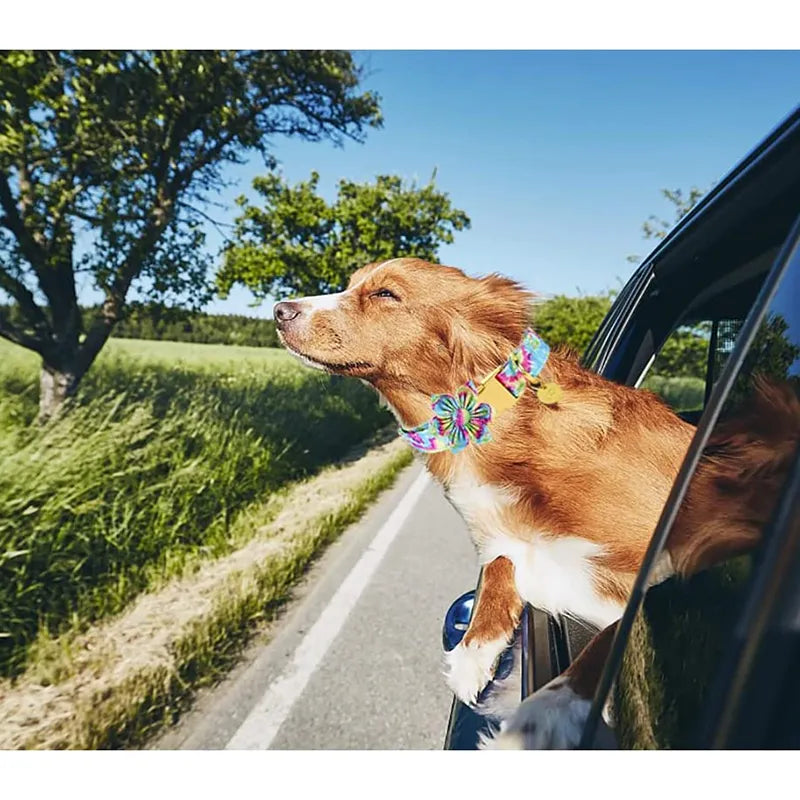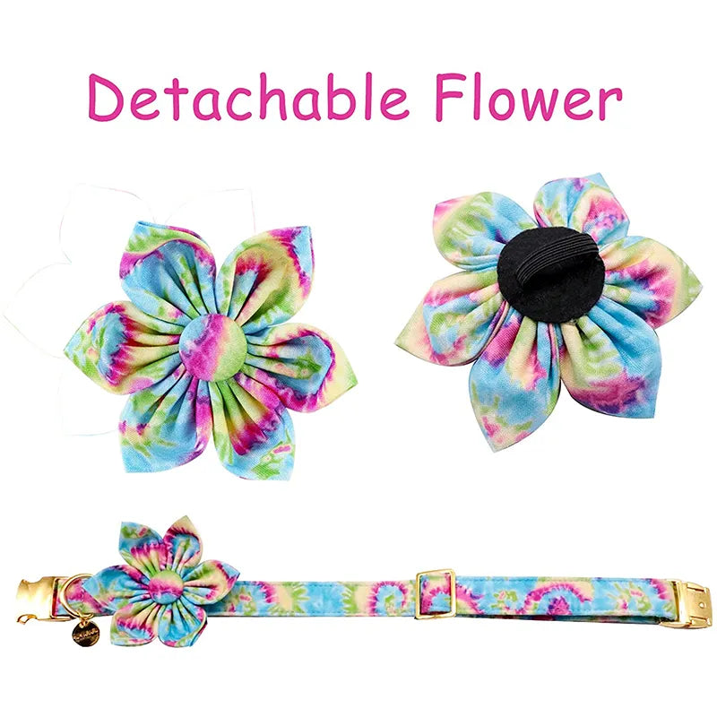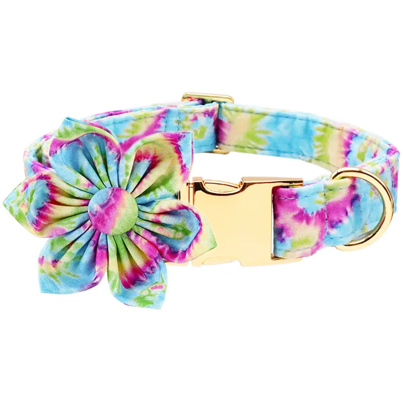 Unique Style Paws Personalized Cotton Dog Collar with Bow Tie Flower Colorful Tie Dye Pet Dog Collar for Large Medium Small Dog